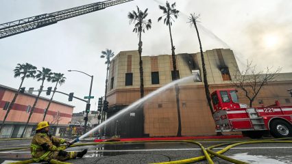 San Bernardino County firefighters tackled a fire at the vacant F.W. Woolworth building on Fourth and E Streets in downtown San Bernardino on Monday, Feb. 9.